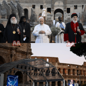 Leone XIV con i leader religiosi al Colosseo per l’incontro di Sant’Egidio. «Il mondo ha sete di pace. Mai la guerra è santa,…