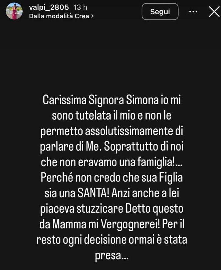 Fuori, intanto, la voce di Valentina risuona di nuovo, stavolta non in una carta piegata ma nelle storie su Instagram.